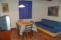(Appartement 3 – 55 m2) ERDGESCHOSS: private, ausgestattete Loggia, Wohn-/Esszimmer (CD- und DVD-player, Sat-TV) mit Küchenecke (Ofen, Tiefkühler), 1 Doppelzimmer, 1 Zimmer mit Etagenbett (ohne Fenster, für Kinder geeignet), 1 Bad mit Dusche.